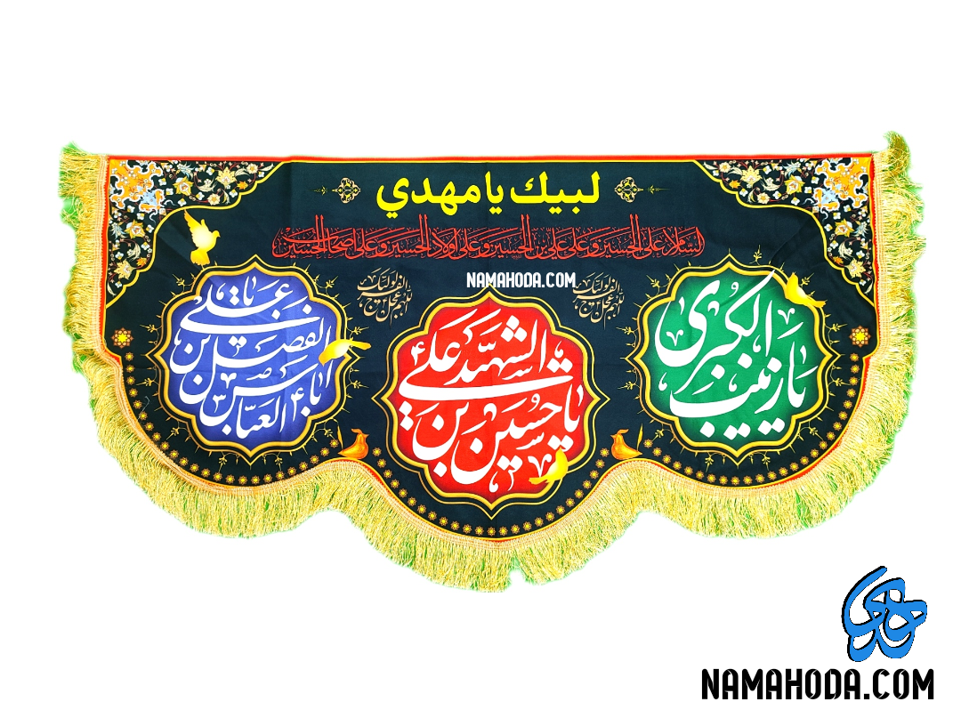 پرچم سه گل زمینه مشکی مخمل قابل شستشو 120 سانتیمتری ریشه دار مناسب جهت نصب در منازل و حسینیه ها
