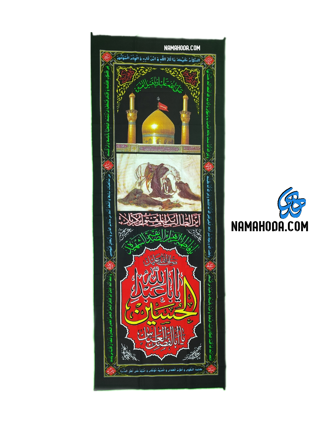 پلاکارد ستونی در انداره 220*90 با طرح گنبد و عصر عاشورا مناسب نصب در هیئات و دیوار منازل