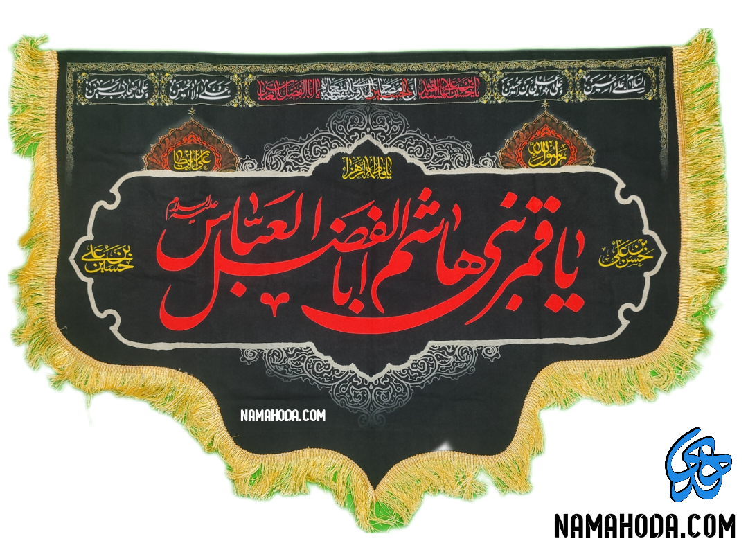 پرچم قمر بنی هاشم قابل شستشو 140*70 مناسب جهت نصب در منازل و حسینیه ها پس زمینه مشکی