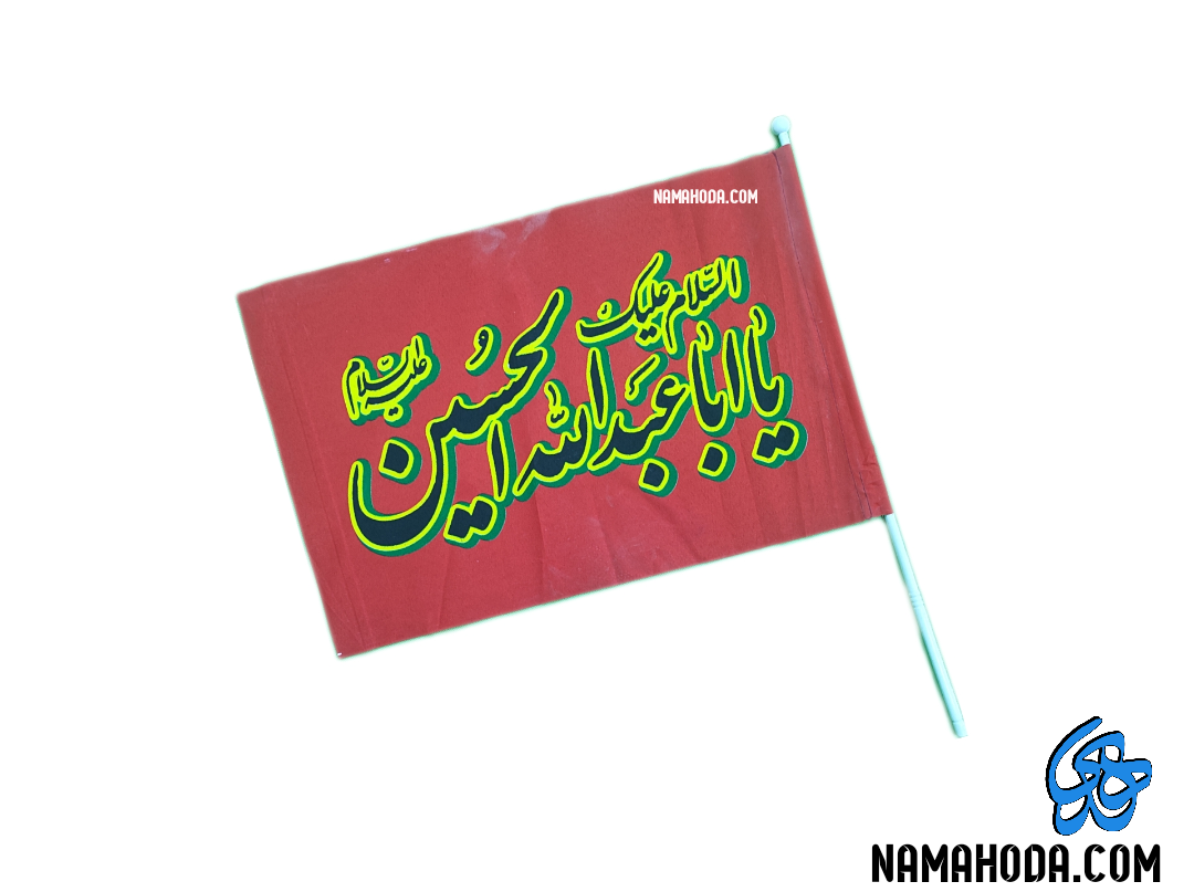پرچم دستی همراه با پایه در طرح های متفاوت و رنگهای مشکی، سبز و قرمز و نوشته های متفاوت مناسب کودکان و اهدا