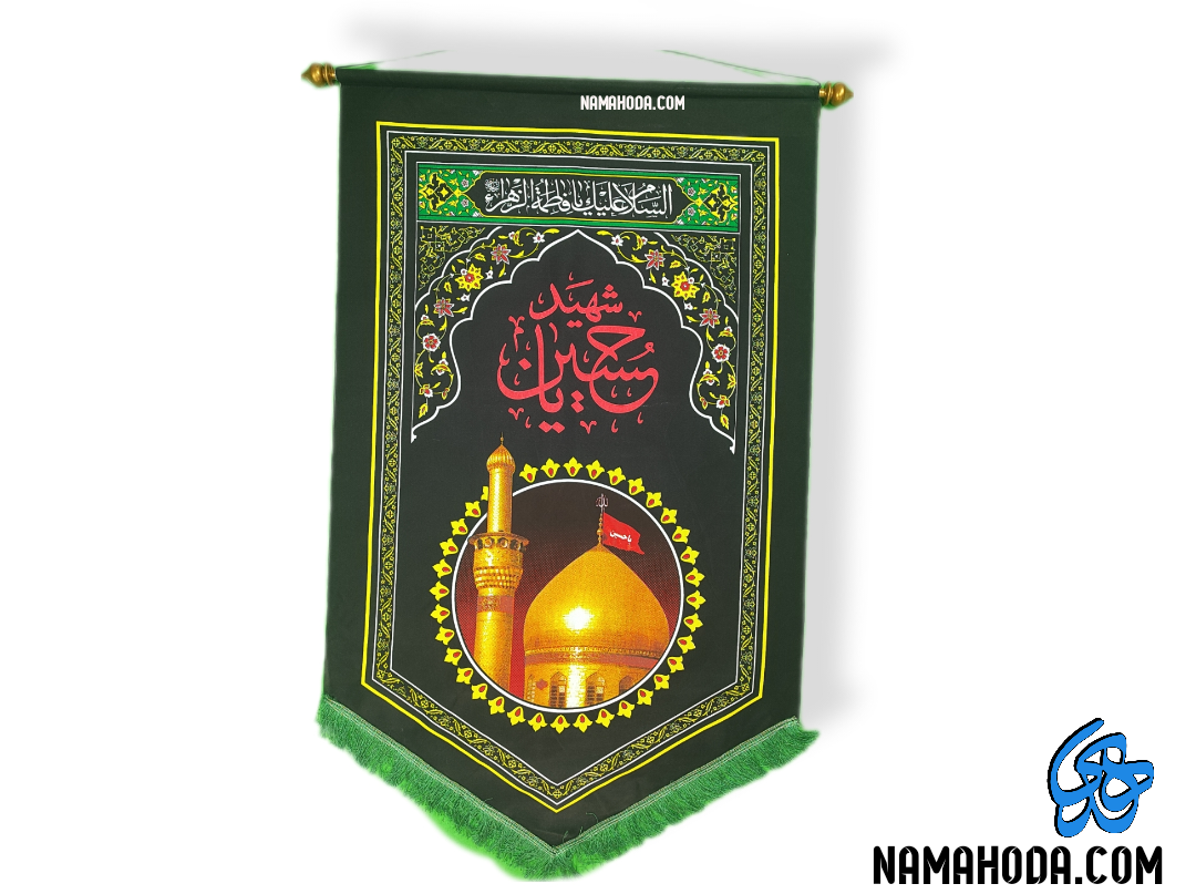 پلاکارد عمودی چهارسلام با طرح گنبد و سلام زیارت عاشورا 160*90 دو سر جاچوب مناسب نصب در هیئات و درب منازل